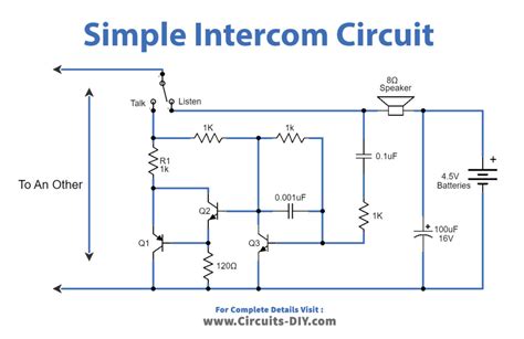 Simple Intercom System Circuit Diagram. Web circuit description for a simple intercom parts list a very simple, yet highly efficient circuit design, for a home intercom system is covered under this article. An electrical circuit is a closed connection of batteries , resistors , wires, switches, etc.